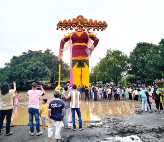 Kharagpur: ‘বধ’ হওয়ার আগে খড়্গপুরের মাঠে মাথা উঁচু করে দাঁড়িয়ে রাবণ, ‘বৃষ্টি-অসুর’-কে নিয়ে দুশ্চিন্তা কাটছে দশেরা কমিটির