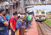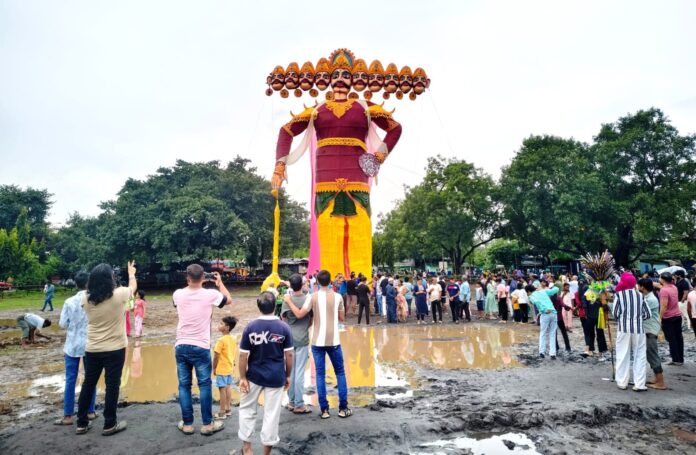 দ্য বেঙ্গল পোস্ট প্রতিবেদন, পশ্চিম মেদিনীপুর, ২ অক্টোবর: অধর্ম বা অশুভ শক্তির বিনাশ, আর শুভ শক্তির আরাধনা করে দুর্গাপুজোর দশমীর দিন দেশের বিভিন্ন প্রান্তের মতোই ‘মিনি ইন্ডিয়া’ খড়্গপুরে ধুমধাম সহকারে পালিত হয় দশেরা উৎসব বা রাবণ বধ বা রাবণ দহন অনুষ্ঠান। দশেরা উৎসব কমিটির উদ্যোগে খড়্গপুর শহরের ১৮নং ওয়ার্ডের নিউ সেটেলমেন্ট এলাকার রাবণ পোড়া ময়দানে এবারও ঘটা করেই রাবণ দহন অনুষ্ঠান আয়োজনের উদ্যোগ নিয়েছিল ‘দশেরা উৎসব কমিটি’। ইতিমধ্যেই মুখ্যমন্ত্রী মমতা বন্দ্যোপাধ্যায় এবং তৃণমূলের লোকসভার দলনেতা অভিষেক বন্দ্যোপাধ্যায় শুভেচ্ছা বার্তাও পাঠিয়েছেন উদ্যোক্তাদের। আয়োজনও প্রায় সারা। রাবণ পোড়া মাঠে চলছে শেষ মুহূর্তের প্রস্তুতি। তবে, আপাতত দুশ্চিন্তা শুধু বৃষ্টি-অসুরকে নিয়েই। ভোররাত থেকে হয়ে চলা একটানা বৃষ্টিতে দহনের আগেই ভিজে একসা হয়েছেন ৫৫ ফুটের সুবিশাল রাবণ! সেইসঙ্গেই মাঠও জলমগ্ন, কর্দমাক্ত হয়ে উঠেছে। যদিও তার মধ্যেই মাথা তুলে সদর্পে দাঁড়িয়ে রয়েছেন ‘অধর্মের প্রতীক’ লঙ্কাধিপতি রাবণ। এদিকে, বৃহস্পতিবার বেলা ১২টার পর থেকে বৃষ্টিও থেমেছে। ফলে আশাবাদী খড়্গপুরের দশেরা উৎসব কমিটি।