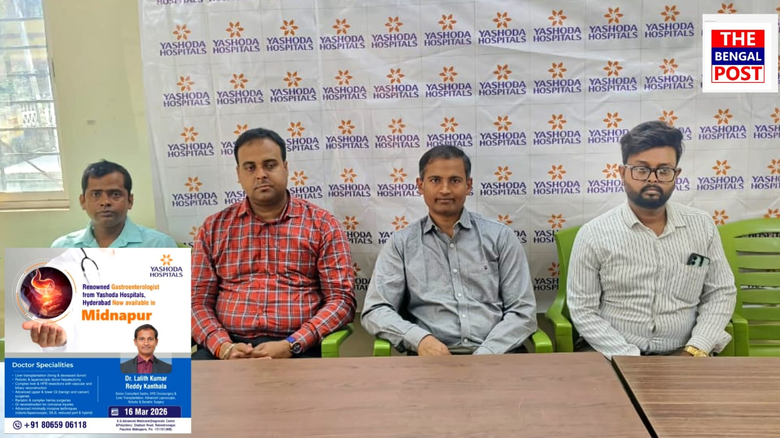 গ্যাস্ট্রিকের চিকিৎসা করার জন্য এরাজ্যের সাধারণ মানুষকে দিনের পর দিন পাড়ি দিতে হচ্ছে ভিন রাজ্যে। বয়স্ক মানুষ তো বটেই বাদ যাচ্ছেনা শিশু-কিশোরী, তরুণ-তরুণীরা। ফলে অর্থের সঙ্গে সময়ের অপচয়। এই পরিস্থিতিতে এবার হায়দ্রাবাদ থেকে খোদ মেদিনীপুরে চিকিৎসা করতে আসছেন যশোদা হাসপাতালের সিনিয়র কনসালট্যান্ট গ্যাস্ট্রো স্পেশালিস্ট ডক্টর ললিত কুমার রেড্ডি কান্থালা (Dr Lalit Kumar Reddy Kanthala)। তিনি সপ্তাহে দু’দিন দেখবেন রোগীদের। অরবিন্দ স্টেডিয়াম রোডের কেজি অ্যাডভান্স মেডিকেয়ার ডায়াগনস্টিক সেন্টারে চেম্বার করবেন তিনি। সোমবার সাংবাদিক বৈঠক করে যাবতীয় তথ্য তুলে ধরেন যশোদা হাসপাতালের আধিকারিকরা। সেইসঙ্গেই উপস্থিত ছিলেন চিকিৎসক ললিত কুমার রেড্ডি কান্থালা। এছাড়াও এদিনের সাংবাদিক বৈঠকে ছিলেন যশোদা হাসপাতালের কর্ণধার সিদ্ধার্থ চৌধুরী ব্যানার্জি সহ অন্যান্যরা।